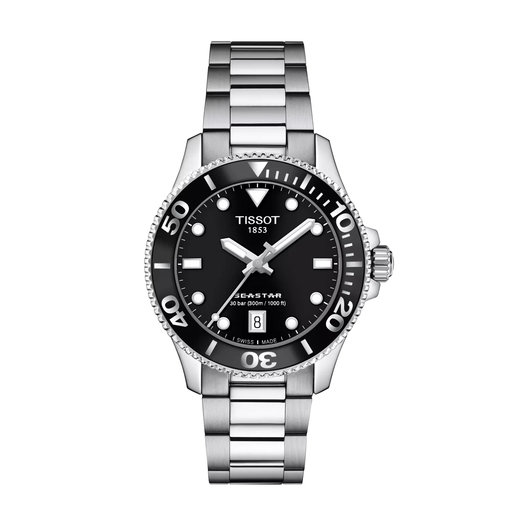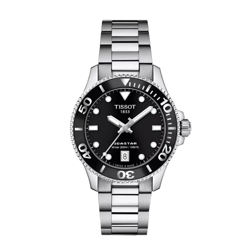 Циферблат черный с аналоговой индикацией через метки и точки. Стекло сапфировое, устойчивое к царапинам. Стрелки оснащены люминесцентным покрытием Super-LumiNova.