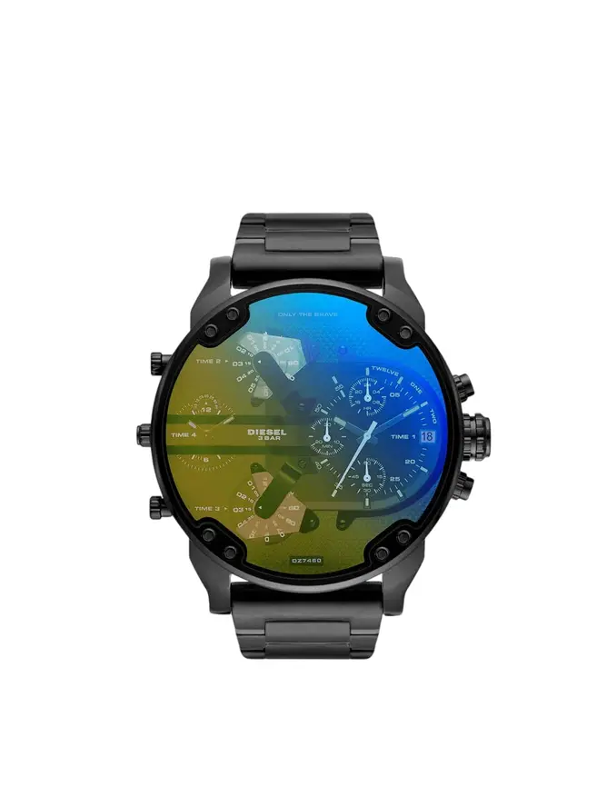 Часы созданы для тех, кто ценит брутальный стиль: массивный черный дизайн со смещенными стрелками и 28-мм браслетом привлекает внимание, но может быть неудобен для миниатюрного запястья. Подсветка стрелок компенсирует отсутствие люминесцентной индикации в темноте. Срок службы батареи до 3 лет избавляет от частого обслуживания.