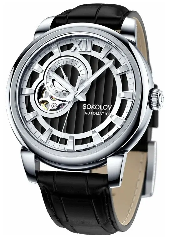44-мм диаметр и толщина 11,5 мм придают часам солидный вид, но могут быть громоздкими для узкого запястья. Черный циферблат без лишних деталей и ремешок из телячьей кожи (ширина 22 мм) делают модель универсальной для офиса или неформальных выходов. Автоподзавод избавляет от необходимости менять батарейку, однако требует регулярного ношения для поддержания точности хода.