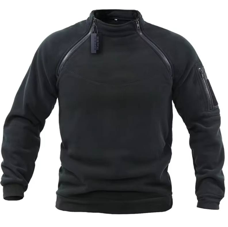 Еще одна модель на молнии, выполненная из флиса. Плотность ткани составляет 240 г/м², что вполне делает ее подходящей для демисезона и не очень холодной зимы (при -25 в толстовке уже будет весьма холодно). Но могут быть проблемы с молнией.