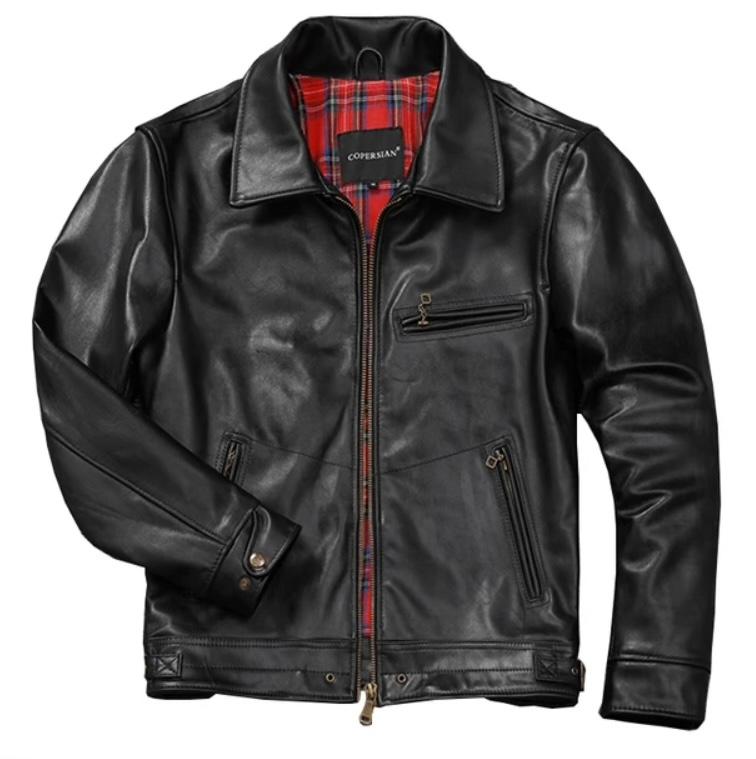 Модель также зауженная и выполненная из коровьей кожи. Но для подкладки был использован плотный и прочный полиэстер. Подойдет для более прохладной погоды, летом, в конце весны или в начале осени вероятно в куртке будет слишком жарко.