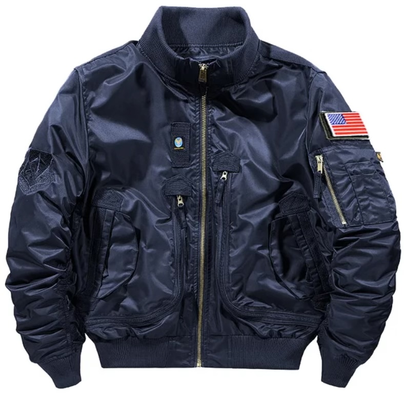 Представлен довольно обширный выбор цветов и размеров этого бомбера. Его можно приобрести в черном, синем, болотном и хаки цветах в размерах S-4XL.
