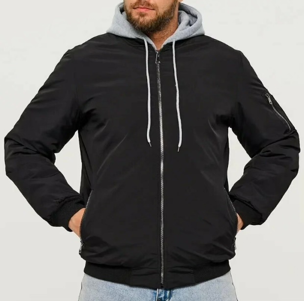 Черный бомбер можно купить в размерах 48-50 и 54-56, а серый только в 58. При этом если вы рассчитываете ходить в более прохладную погоду, лучше брать на размер больше, чтобы была возможно надевать теплую кофту под низ.