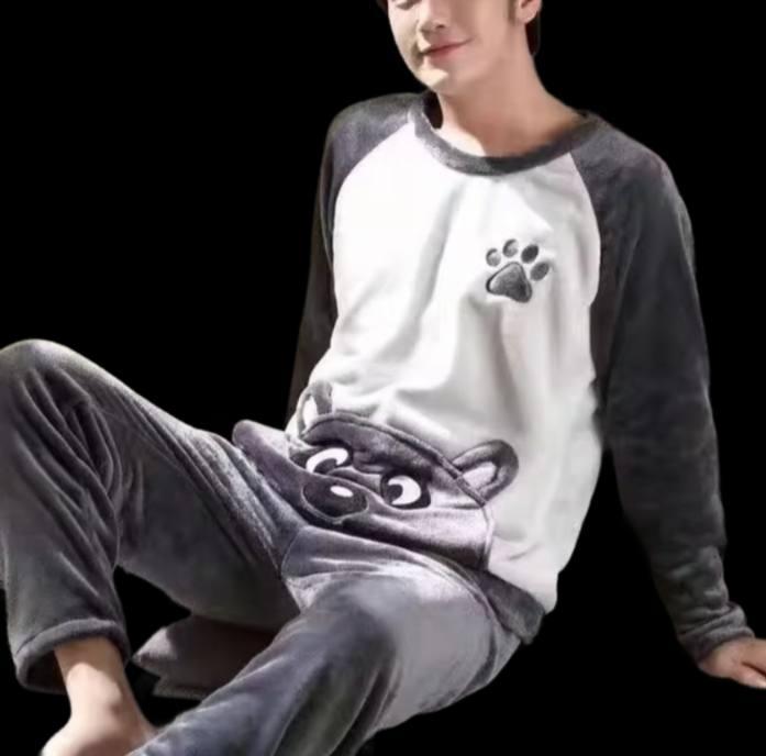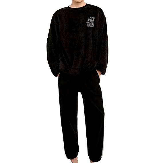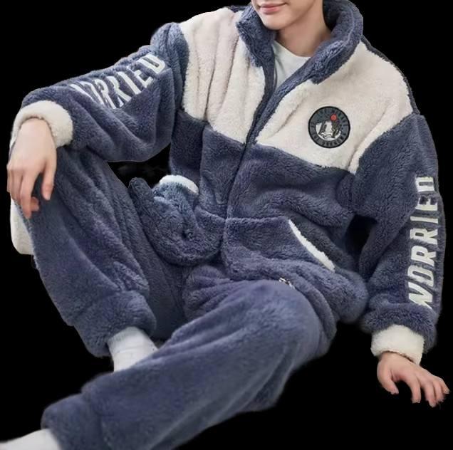 Еще один флисовый домашний пижамный костюм из полиэстера и фланели, состоящий из кофты и штанов.