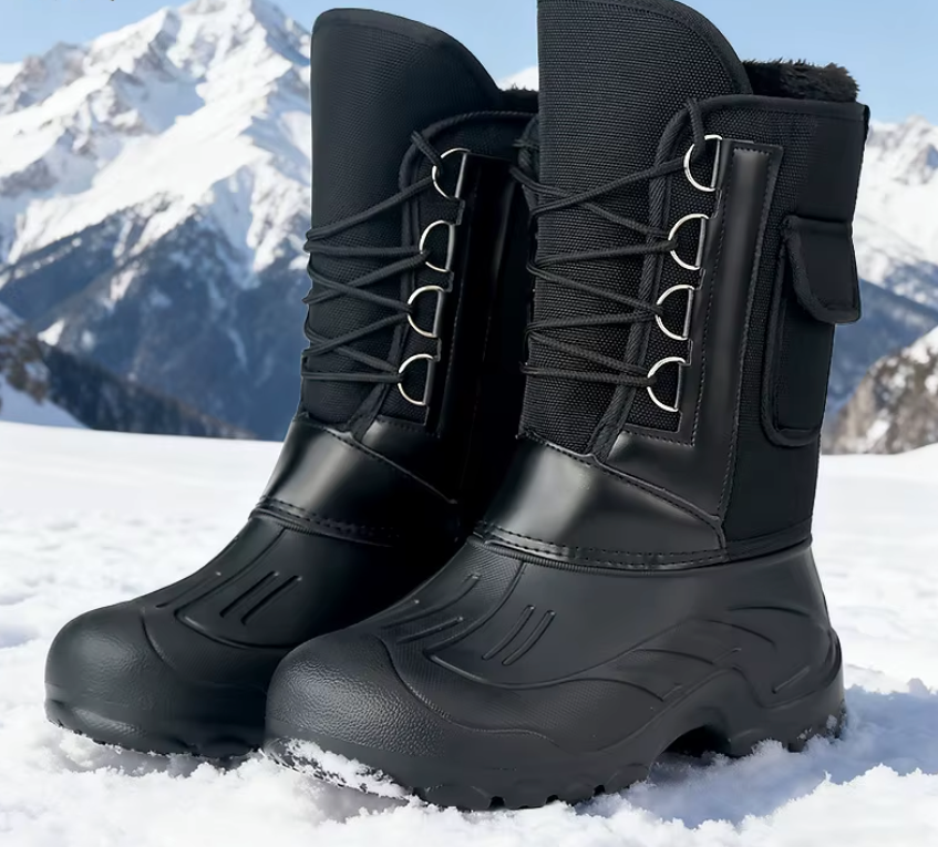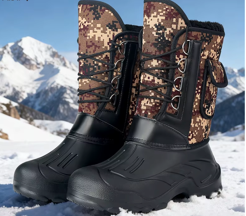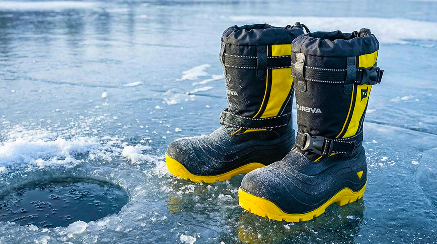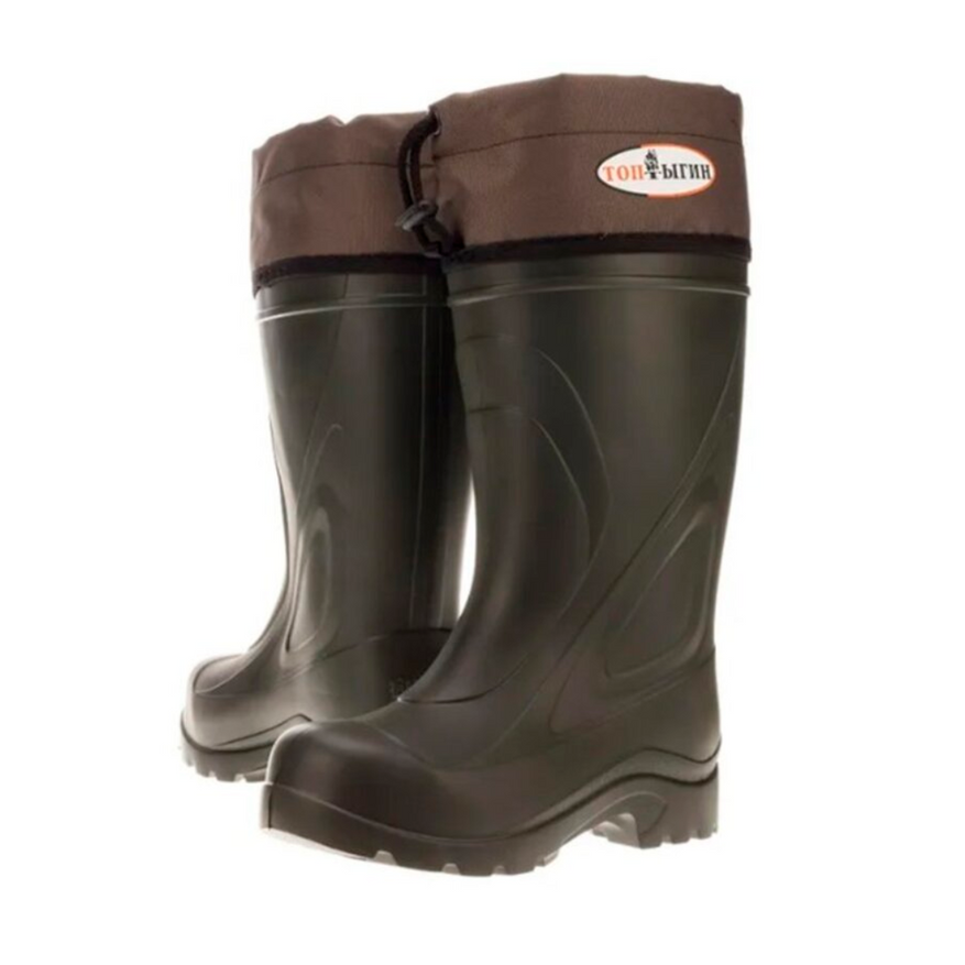 Эта обувь сделана для зимы, когда холод, снег и вода идут вместе. Не для коротких выходов, а для ситуаций, где приходится долго быть на улице: идти, стоять, сидеть на льду, потом снова идти. Снаружи используется ЭВА — лёгкий материал, который не впитывает воду и не дубеет на морозе. Он сам по себе держит тепло за счёт воздуха внутри.