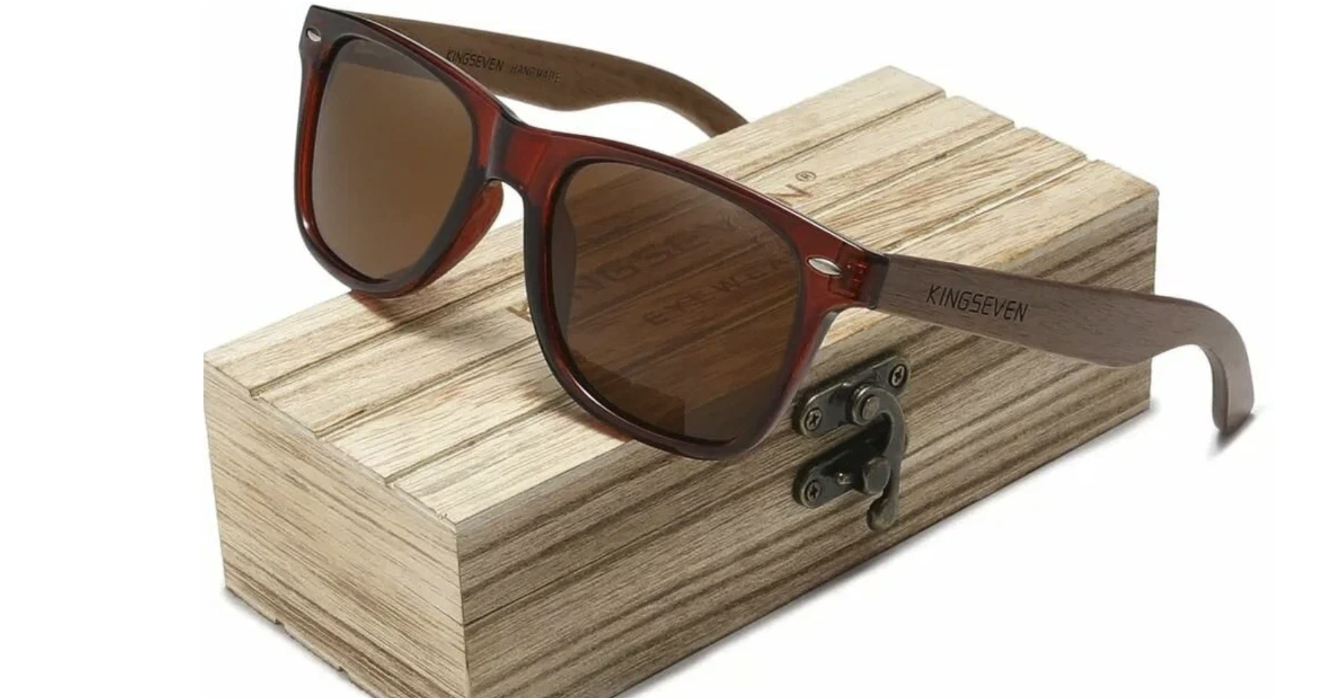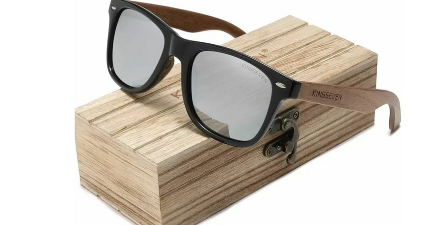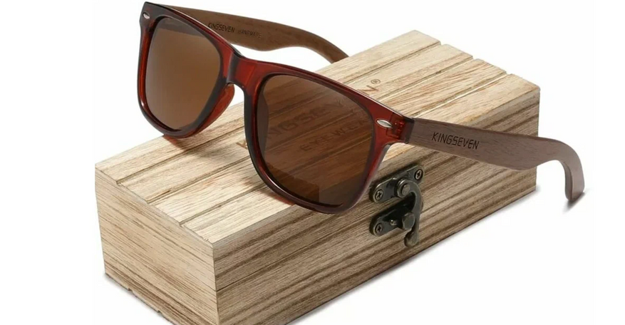 Корпус комбинированный: дерево и пластик, и это не просто дизайнерский ход. Дужки выглядят солидно, ощущаются добротно, не болтаются, а выгравированные детали и серийные номера подтверждают внимание к качеству.