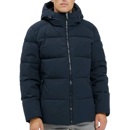 Куртка из полиэстера утеплена альполюксом (он представляет собой смесь натурального и синтетического пуха) плотностью 200 г/м². Ткань достаточно плотная, а еще она дополнительно снабжена водоотталкивающей мембраной, которая обеспечивает защиту от осадков. Также от непогоды предусмотрен и капюшон.