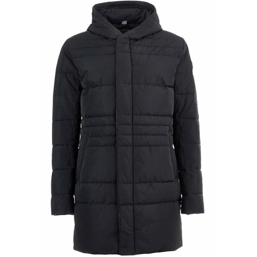 Удлинённая парка сделана из полиэстера и внутри утеплена. Мембранная ткань дополнительно обеспечивает защиту изделия от грязи и влаги. Кроме того, особое плетение нитей ткани гарантирует более высокую износостойкость.