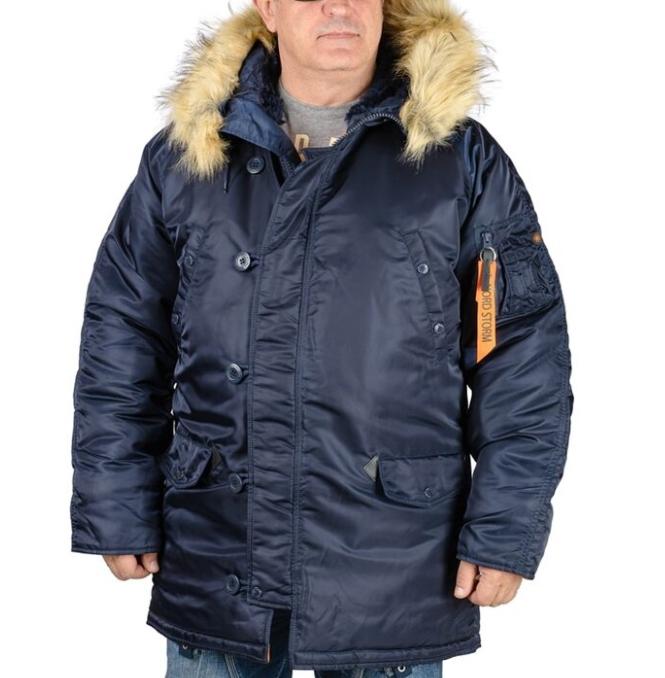Тёмно-синяя парка доступна в 48 и 56 размерах и стоит она на 6000 рублей дороже серой, которая осталась в наличии лишь в 48.