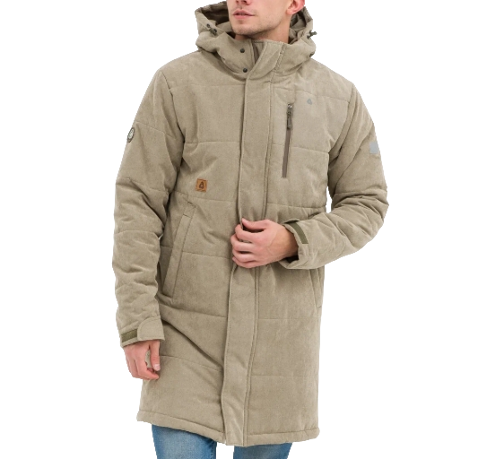 Верх сочетает в себе нейлон и полиэстер, а подкладка выполнена из вискозы. Благодаря флису парка выдерживает сильные морозы.