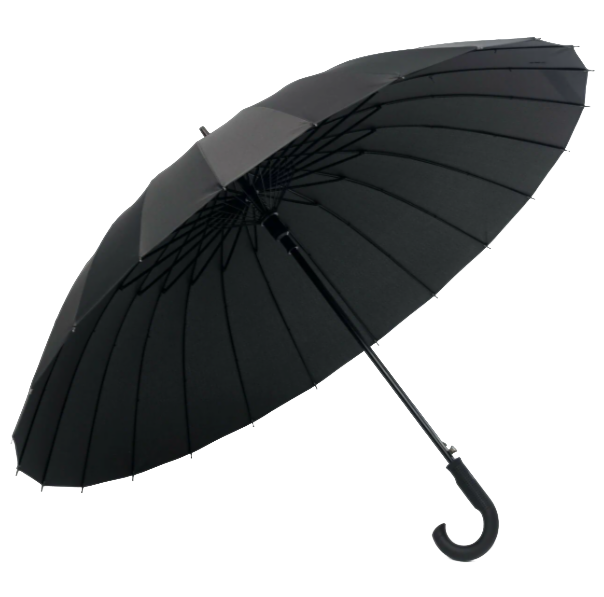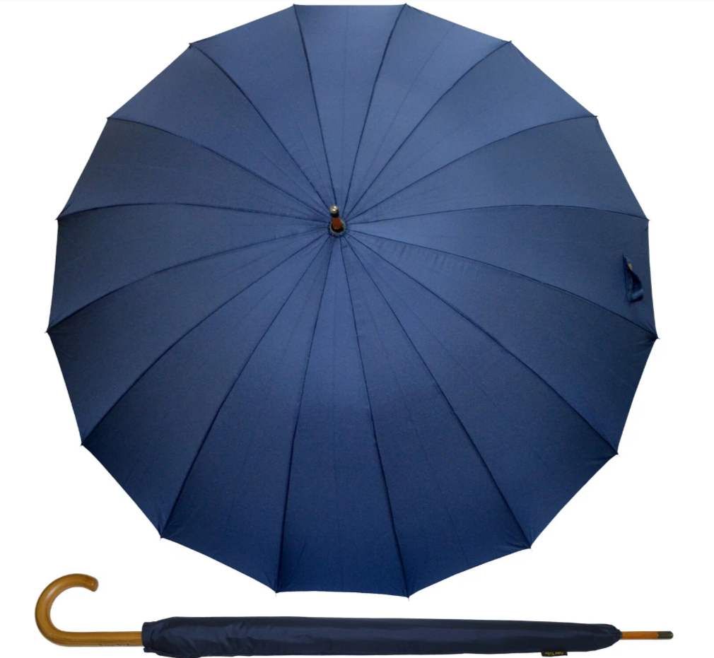 Этот зонт-трость с конструкцией из 24 спиц можно купить чёрного, синего и бирюзового цветов.