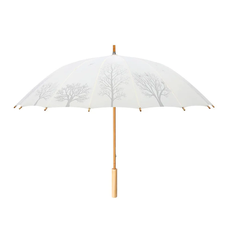 Дизайн этого зонтика выполнен в японском стиле. Его можно купить в белом, золотом и черном цветах.