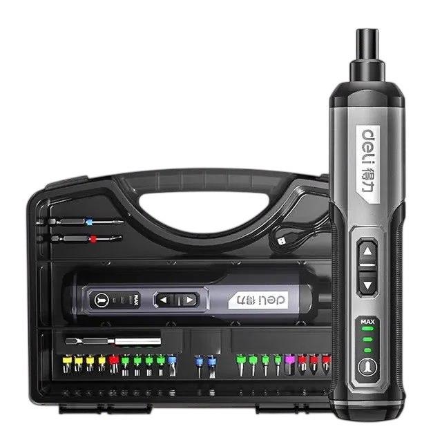 Компактный набор с акцентом на ремонт электроники и цифровых устройств, в котором предусмотрено сразу 38 бит из стали CRV и дополнительные медиаторы для разборки корпусов. По сравнению с первым шуруповертом Deli он слабее (крутящий момент 3,0-3,5 кгс·см против 5 Н·м), но заметно мощнее и функциональнее второго набора с моментом 0,35 Н·м. Здесь алюминиевый корпус, аккумулятор 600 мАч с зарядкой через USB-C, скорость до 1100 об/мин и режим реверса, что делает инструмент удобным именно для работы с телефонами, ноутбуками, консолями и мелкой техникой, где важна точность и богатая комплектация, а не грубая сила.