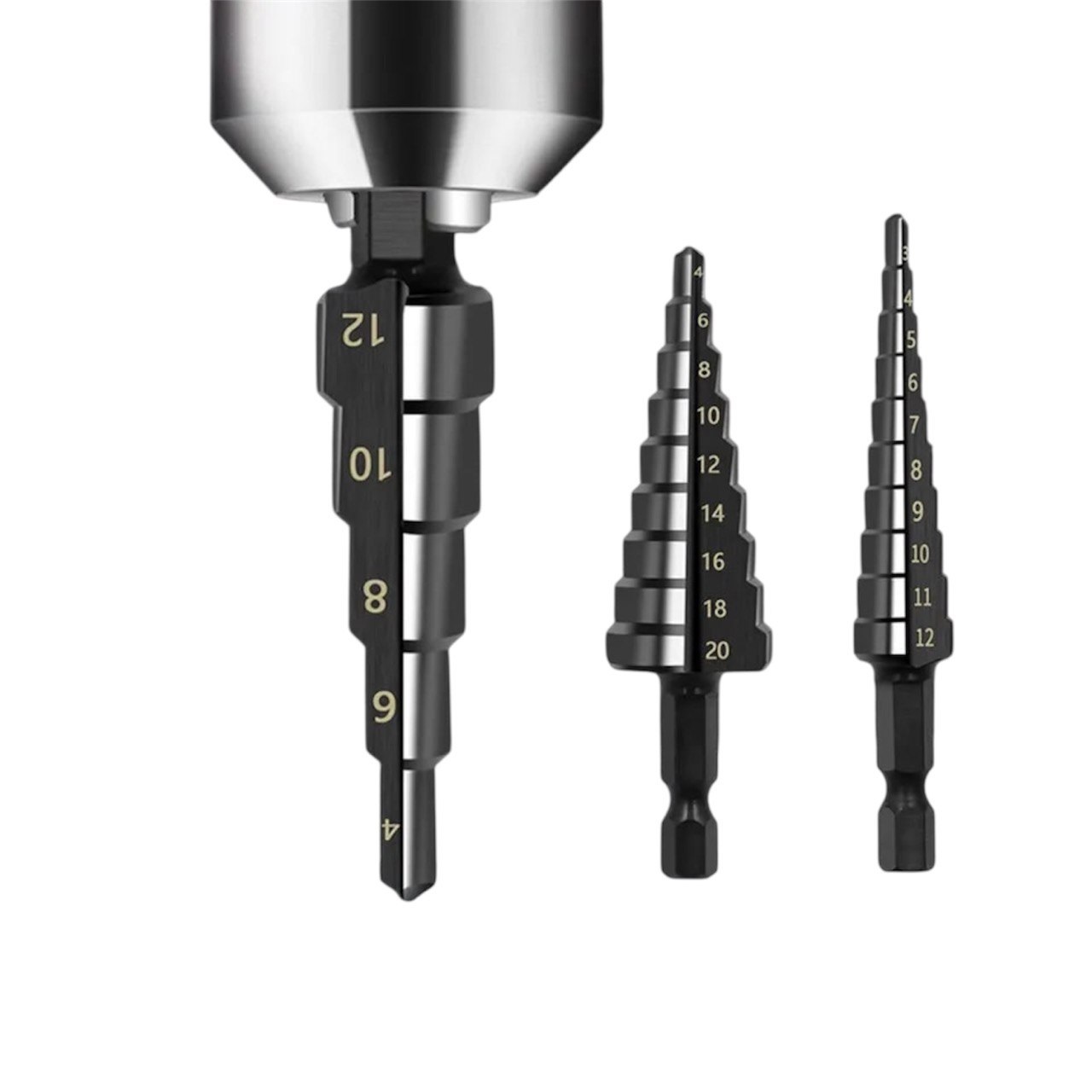 9. Набор ступенчатых сверл (3-12 мм, 4-12 мм, 4-20 мм)
