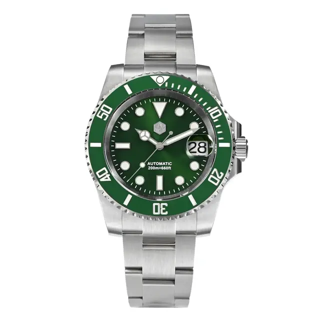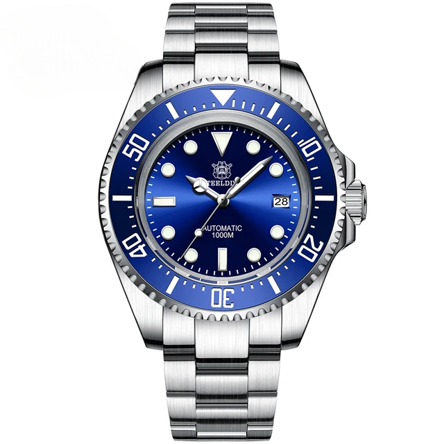 Часы оснащены односторонним вращающимся безелем с 120 кликами и метками для отсчёта погружений.