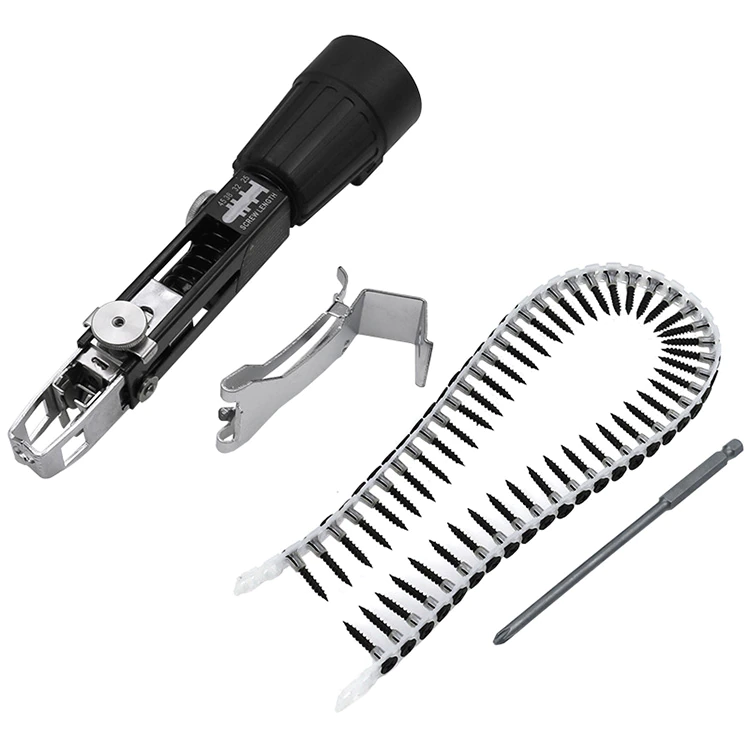 Насадка для облегчения работы по крепежу панелей или других элементов саморезами. Отлично показала себя по работе с фанерой или гипсокартоном, поэтому отделочникам можно взять на заметку. Представляет собой подающий механизм и ленту. Лента снаряжается отдельно, она есть отдельно у продавца. Насадка очень удобна при работах на высоте.