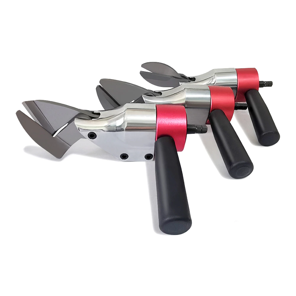 Три различных типов насадок-ножниц для резки листового металла. В зависимости от типа ножниц можно резать металл из углеродистой стали до 1,5 мм. Конструкция надежная, для установки в патрон используется шестигранный хвостовик, для удержания пластиковая ручка. Желательно иметь мощный шуруповерт с хорошим моментом на валу.