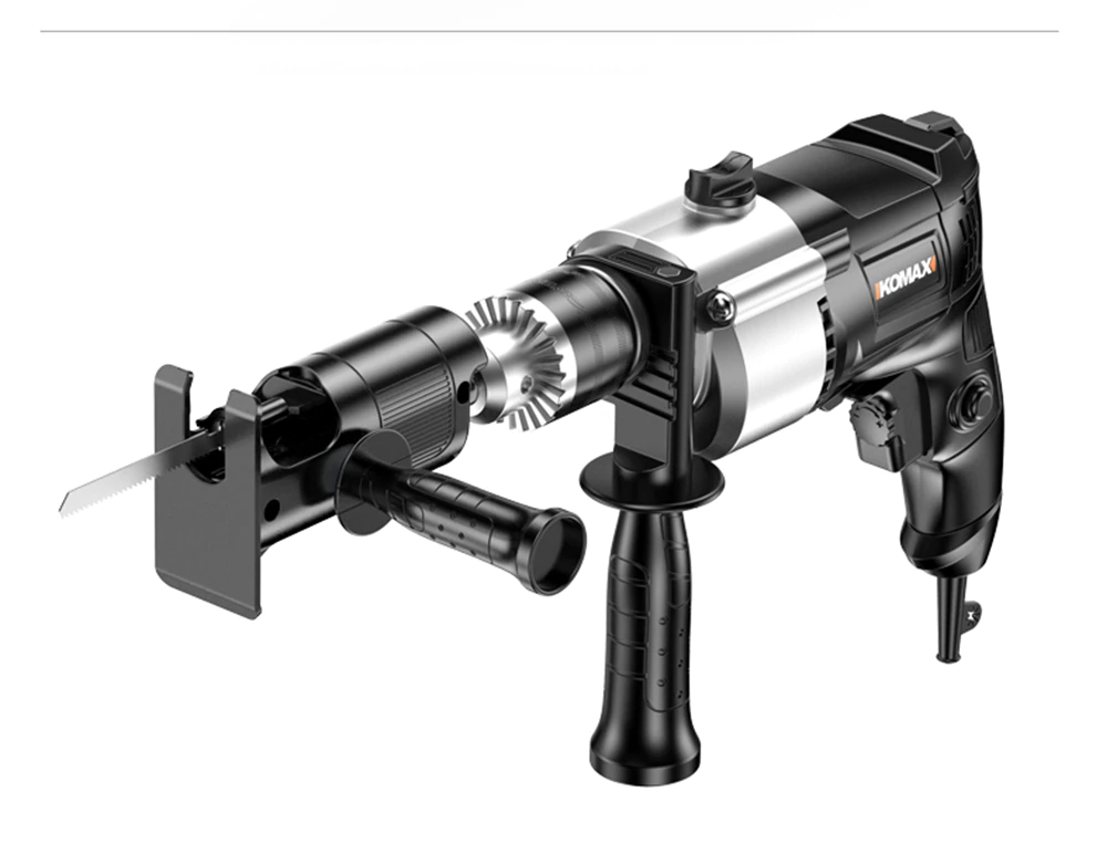 Это обновленная модель насадки для превращения дрели или шуруповерта в удобную сабельную пилу, при помощи которой можно распиливать металл, дерево или пластик в зависимости от типа установленного полотна. При установке горизонтально можно использовать как лобзик. От себя добавлю, что сабельная пила очень полезна в домашнем хозяйстве, сам пользуюсь и не нарадуюсь.