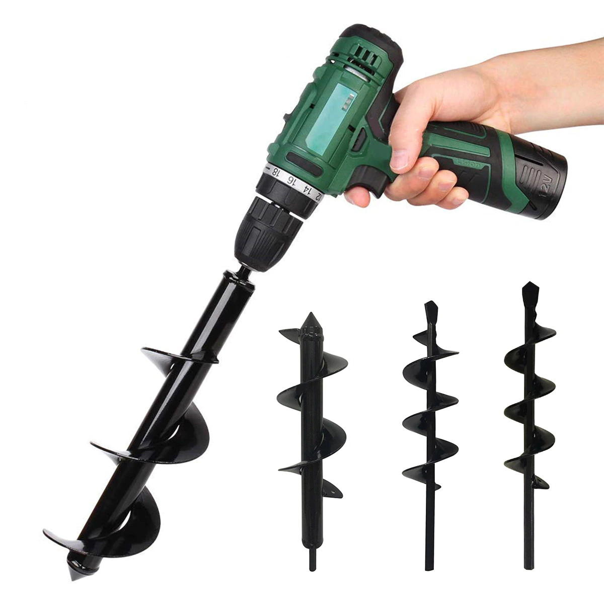 Очень удобная насадка, при помощи которой можно легко сделать аккуратную лунку для посадки саженцев. Буры большого диаметру предназначены уже для создания лунок опорных конструкций. Но в этом случае нужен мощный шуруповерт с хорошим моментом на валу иначе работа превратится в пытку. Бур выполнен из стали, сломаться не должен.