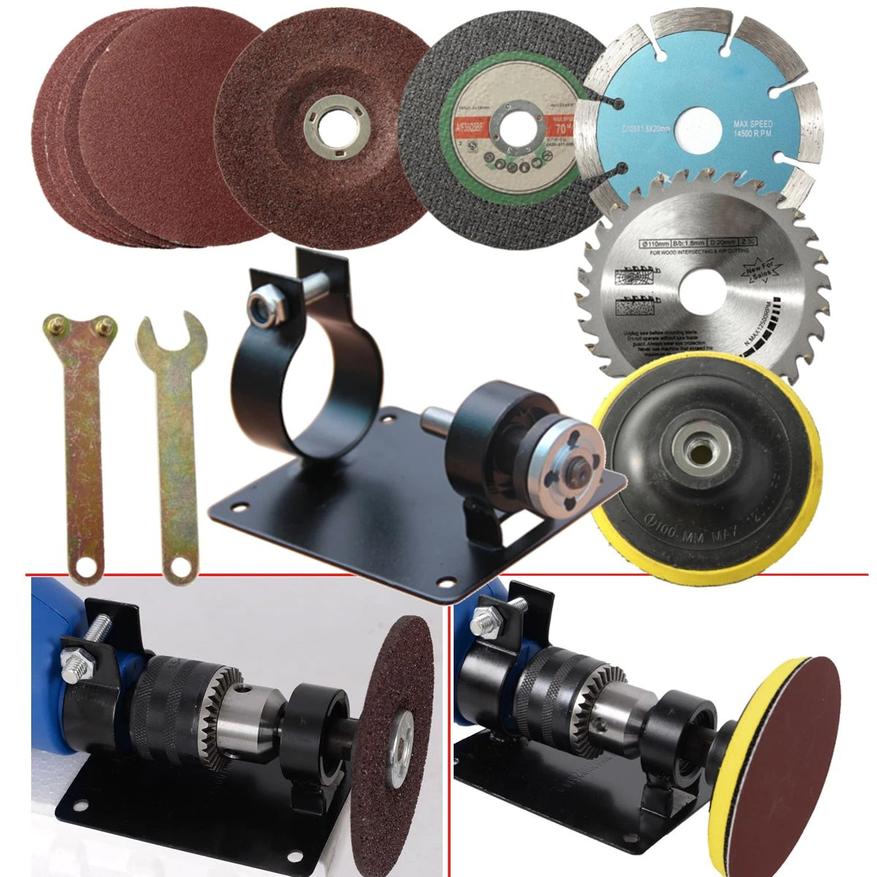Помимо этого, набор включает платформу 11х8,6 см с креплением для дрели и четырьмя отверстиями для неподвижной установки на столе. Можно также выбрать варианты с режущими/шлифовальными дисками и защитным кожухом.