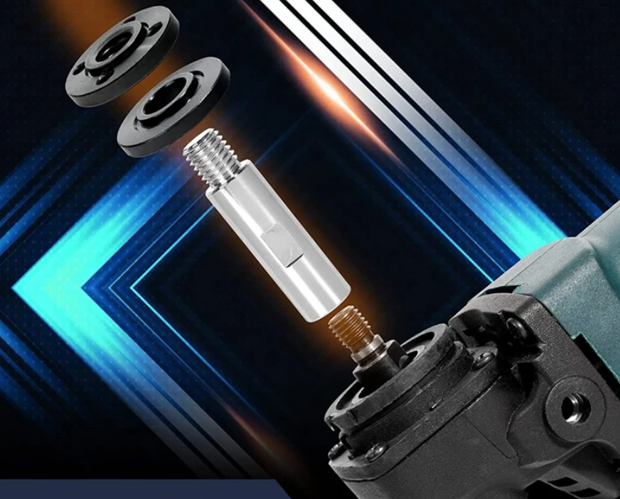 Для тех случаев, когда дотянуться до заготовки классическим исполнением болгарки не получается, существуют подобные удлинители. Разумеется, такое приспособление понадобится не каждому, но иногда просто выручит в трудной ситуации. В комплекте несколько запасных затяжных шайб и инструмент для затяжки. На странице указаны модели, к которым подойдёт данный удлинитель. Нужно просто уточнить размер вала и сравнить с вашей моделью УШМ.