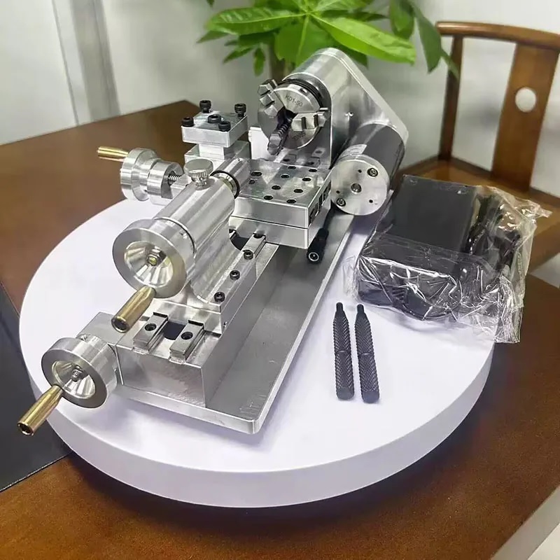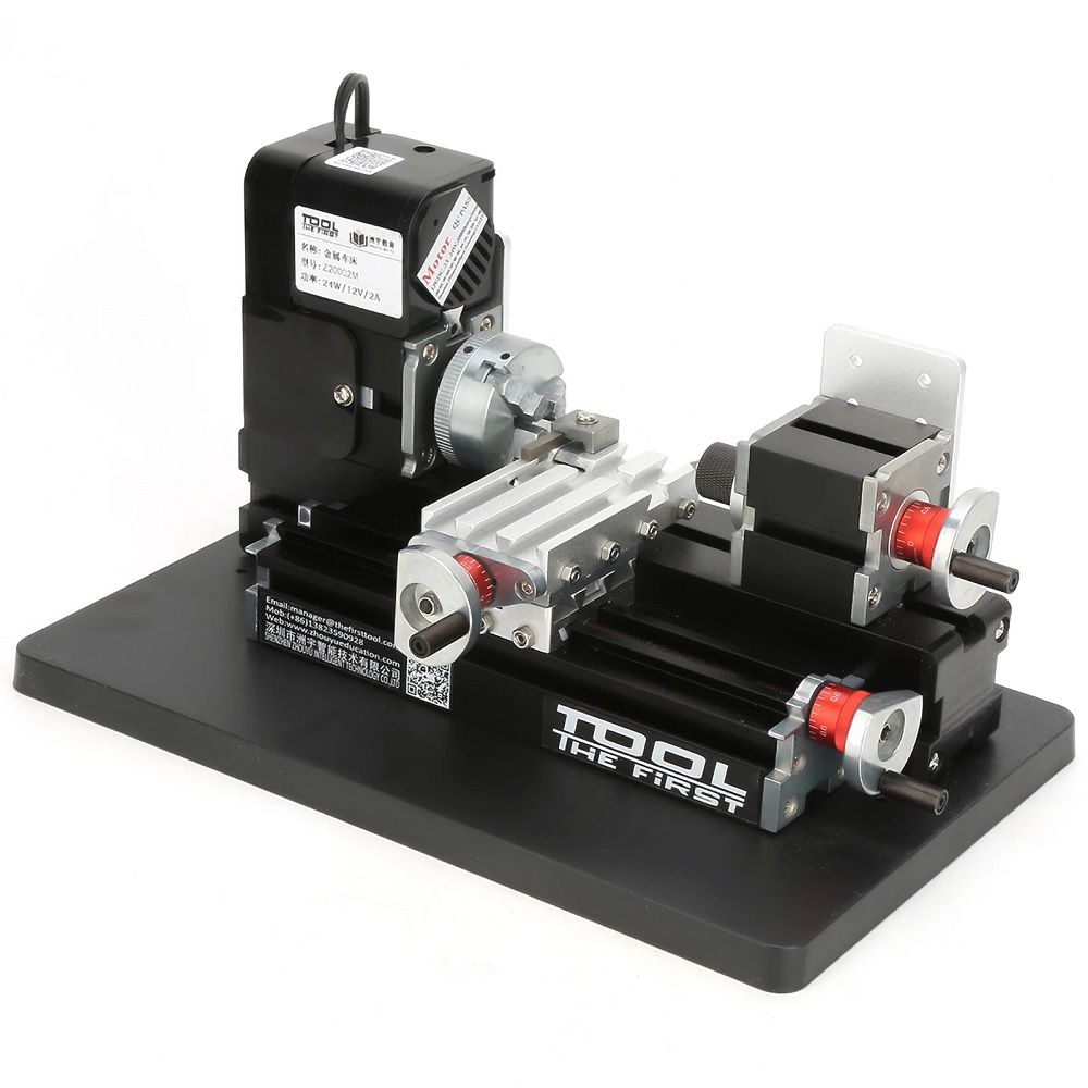 Ещё одна компактная модель, однако уже с расширенными возможностями. Изготовлен из алюминиевого сплава и ударопрочного пластика. В отличие от предыдущего станка в подборке, оснащён электродвигателем на 36 Вт. Вместе с этим скорость вращения шпинделя остаётся такой же — до 20 000 об/мин. Максимальный диаметр заготовки над станиной составляет до 50 мм, а расстояние между передней и задней бабкой — около 150 мм.