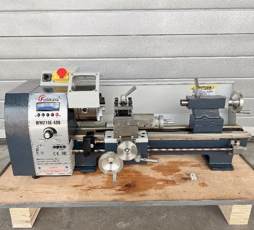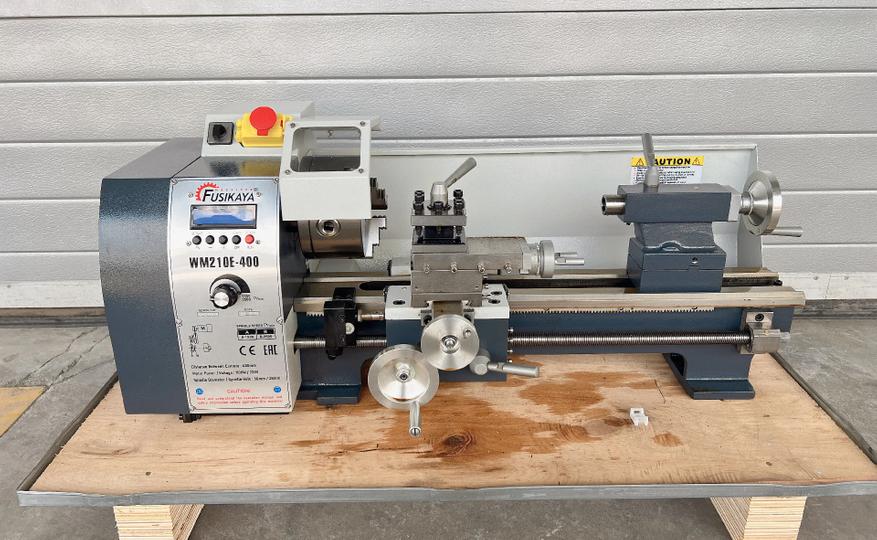 Завершает подборку модель от уже упомянутого бренда FUSIKAYA. У этого станка станина и направляющие выполнены из закалённого металла с твёрдостью 48-52 HRC. Шпиндель оборудован толстостенным корпусом и конусом Морзе 5 (MT5), а проходное отверстие диаметром 38 мм совместимо с широким набором патронов и оснастки. Электродвигатель синхронного типа обладает номинальной мощностью до 1100 Вт с плавной регулировкой оборотов до 2500 об/мин. Максимальный диаметр заготовки над станиной составляет до 210 мм, а расстояние между передней и задней бабкой — около 400 мм. Коротко о ходе суппортов: поперечный 110 мм, продольный 65 мм, ход пиноли задней бабки составляет 60 мм. Для эффективной работы имеется четырёхпозиционный резцедержатель. Продвинутая система управления включает в себя автоматическую и повторяющуюся подачу, определение угла поворота шпинделя, а также настройки для нарезания метрической и дюймовой резьбы.
