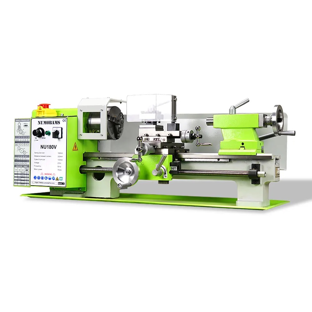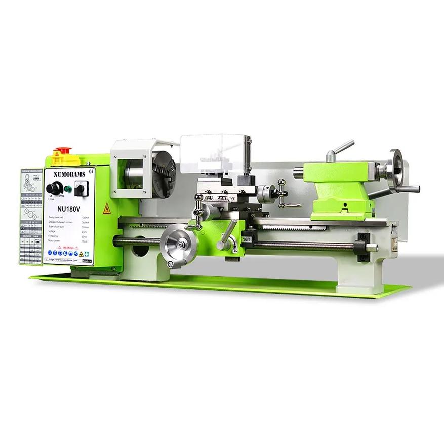 Предпоследний в подборке ещё один станок от бренда NUMOBAMS. Эта модель мощнее и обладает улучшенными техническими характеристиками. На мой взгляд, аппарат может справиться с мелкосерийным производством заготовок. Сердцем станка является бесщёточный двигатель мощностью около 900 Вт, обеспечивающий высокий крутящий момент при работе в различных режимах. Максимальная длина обрабатываемой детали — до 400 мм с диаметром до 210 мм. Оснащён шпинделем с отверстием диаметра 38 мм и конусом MT5. Модель совместима с широким набором оснасток, а система автоматического изменения шестерней позволяет выполнять операции точения и нарезания резьбы с контролируемой скоростью и точностью.