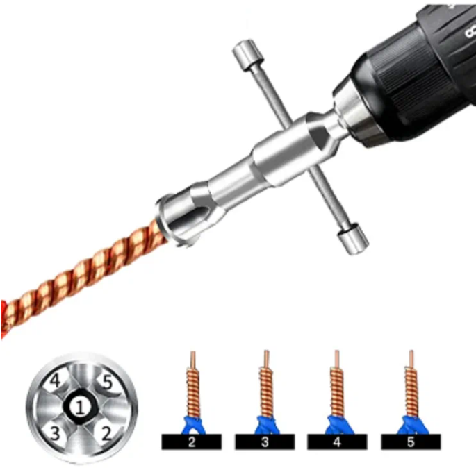 Эта насадка предназначена для быстрого соединения нескольких проводов. Рабочая часть снимает изоляцию и одновременно скручивает жилы, образуя надёжный контакт. Конструктив насадки предусматривает скрутку до пяти проводов, что удобно при электромонтаже.