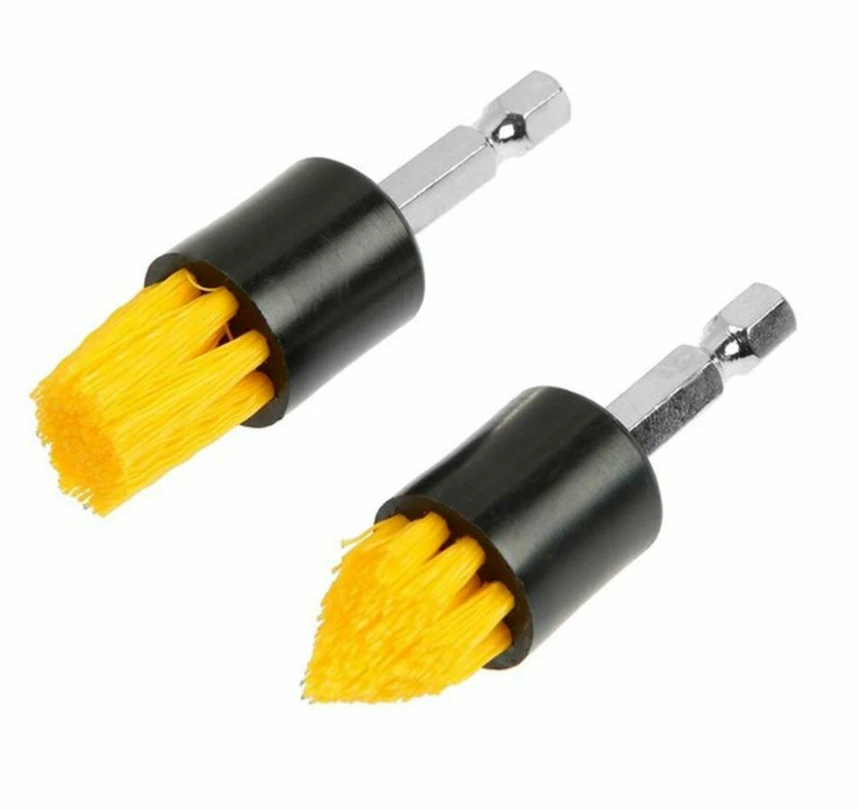 Этот комплект включает две щеточные насадки, которые используются для очистки поверхностей. Диаметр каждой составляет 18 мм, а рабочая глубина 19 мм. Благодаря небольшим размерам щетки подходят для деликатной работы.