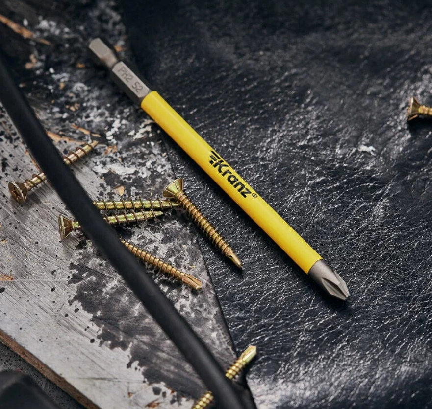 Эта удлиненная бита предназначена для работы с саморезами и винтами формата PH2. Длина 110 мм делает её удобной при заворачивании крепежа в глубокие посадочные места. Шестигранный хвостовик Е6.3 обеспечивает надёжную фиксацию в патроне шуруповерта.
