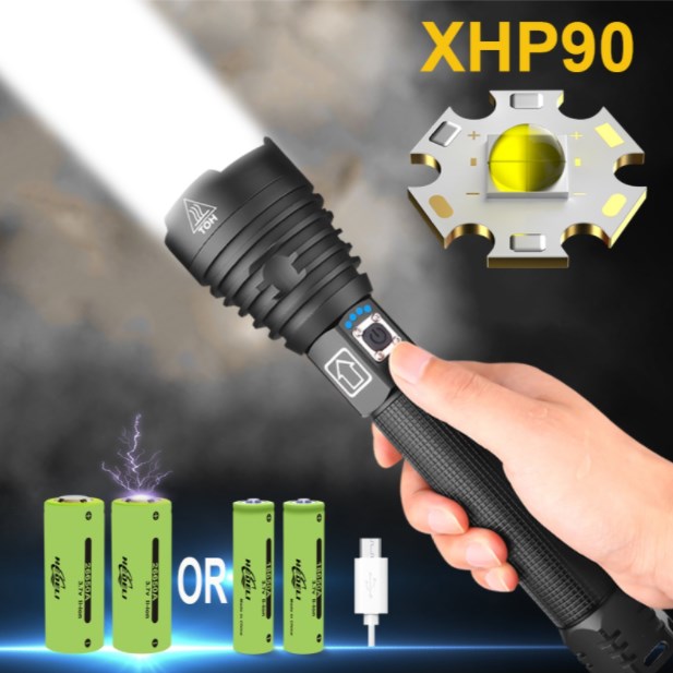 Как на большинстве современных фонарей, на данной модели при заказе можно выбрать один из типов предложенных светодиодов. Продавец предлагает три варианта с яркостью светового потока от 10000 до 250000 люмен. Для питания мощных светодиодов установленных в данном фонаре используется уже два аккумулятора типа 18650 или 26650 в зависимости от вашего выбора. Также стоит отметить, что самую мощную модель можно использовать на расстояние до 1000 метров.