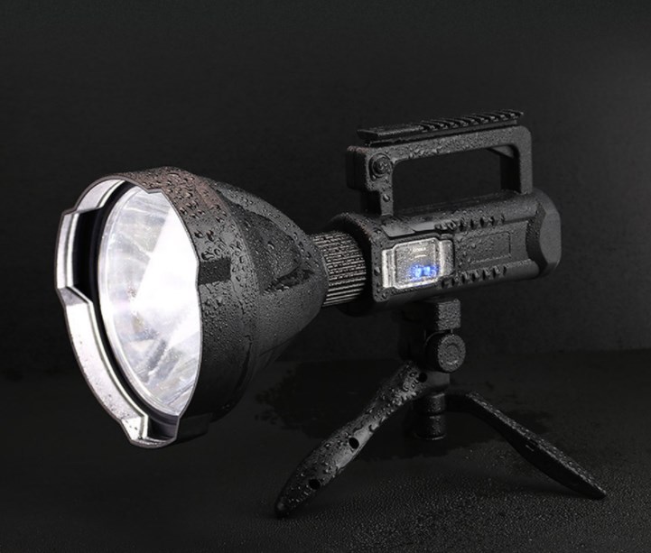 И последний фонарь в данной подборке продается в двух размерах. В независимости от выбора модели, фонарь имеет большой отражатель, благодаря которому устройство освещает огромную площадь. Также в комплекте можно приобрести специальный штатив для фонаря и использовать его в качестве стационарного прожектора. Питается устройство от трех аккумуляторов типа 18650, их заряда хватает примерено на 5 часов беспрерывной работы устройства.