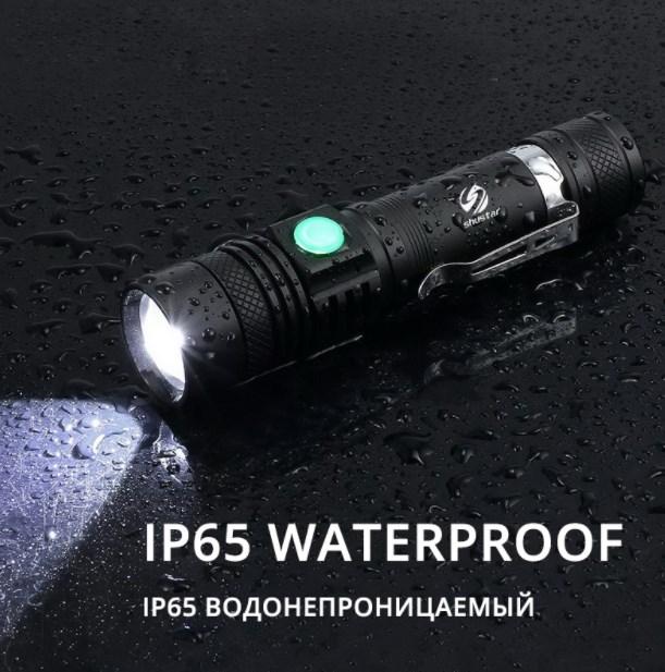 Корпус этого фонарика имеет защиту от влаги по классу IP65, а также для питания он использует съемный аккумулятор стандарта 18650. Для ношения на ремне или другой одежде, фонарик имеет специальный зажим. Также, обратите внимание, что при заказе можно выбрать один из трех светодиодов, которые отличаются яркостью светового потока от 1000 до 2000 Люмен. Дополнительно в комплекте можно заказать удобное автомобильное зарядное устройство для фонаря.