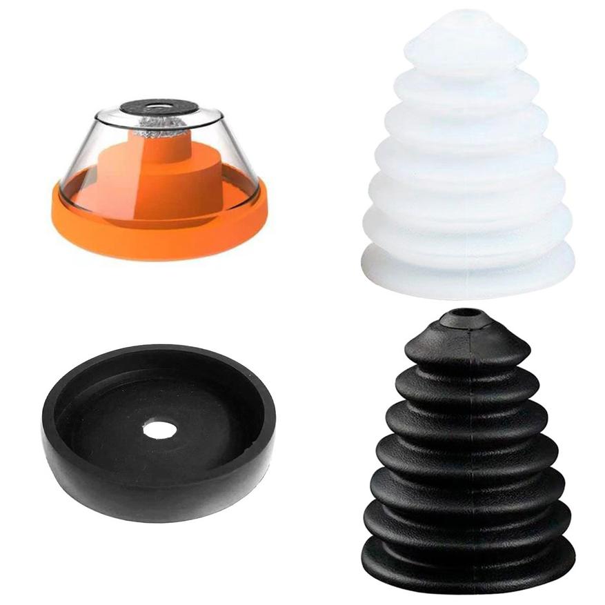 Из трех предложенных вариантов насадка «гармошкой» самая эффективная — она из плотной резины с с уплотнителями в комплекте; фиксируется на сверле (с диаметром сверла 6-14 мм) и в процессе работы постепенно складывается гармошкой вслед за ходом сверла.