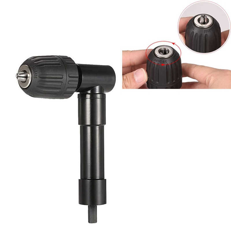 В подобных ситуациях вам и пригодится этот адаптер: он имеет шестигранный хвостовик с одной стороны, (вставляется в быстрозажимной патрон), дальше расположена ручка, и под углом в 90 градусов находится быстрозажимной патрон для сверла (на стандартный диаметр от 1 до 10 мм).