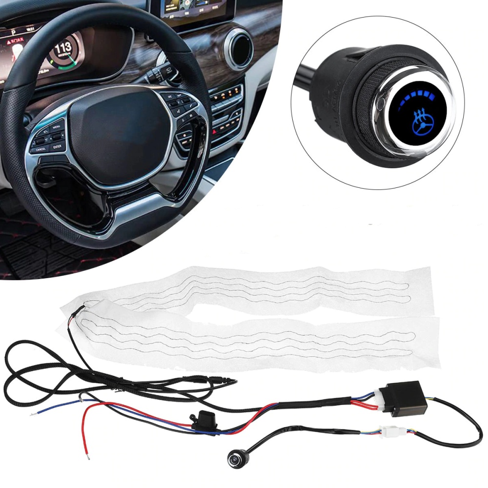 Готовый к установке универсальный комплект для обогрева руля автомобиля с возможностью регулировки. Нагревательные нити подключены к контроллеру и управляются переключателем на шесть степеней нагрева. Ширина накладки 9 см. По отзывам штука работает неплохо. Естественно, не оставлять включенным без присмотра.