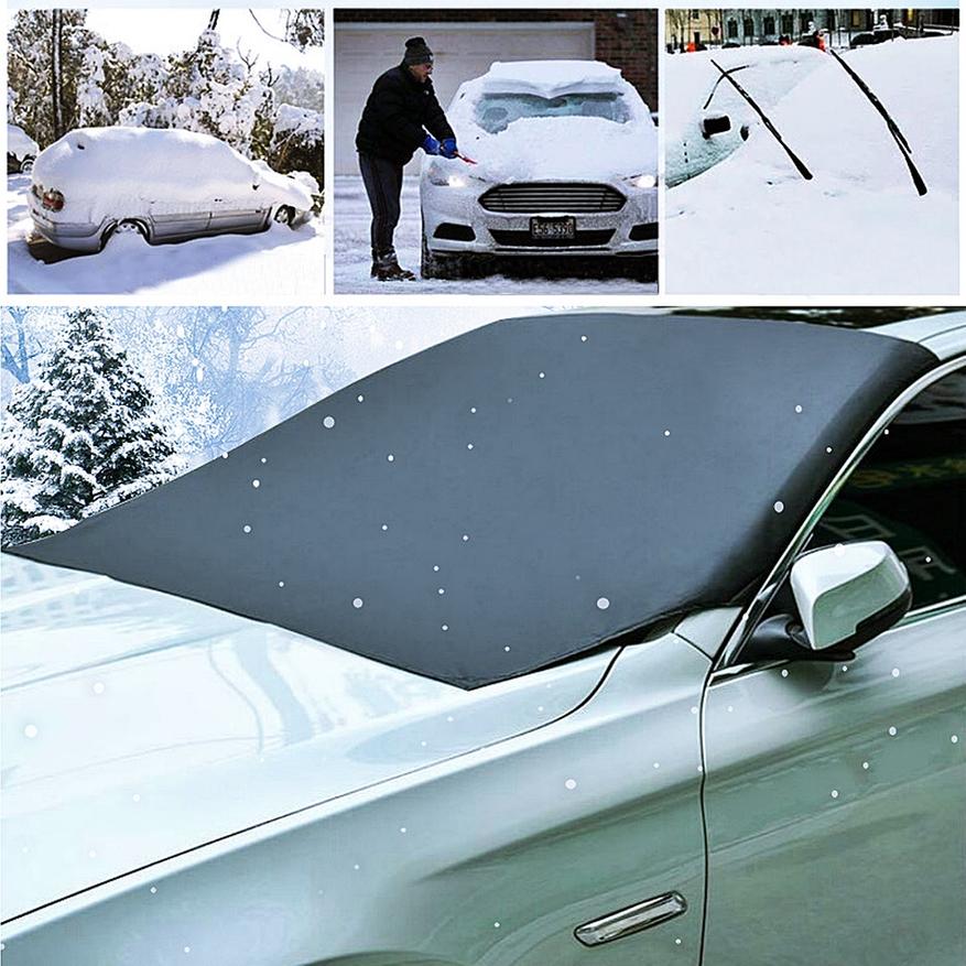 Специальный тент для автомобиля для защиты лобового стекла от наледи и снега. В кромку тента вшито несколько достаточно мощных магнитов, что позволяет быстро и просто его установить примагнитив их к корпусу авто. Тент двухсторонний, одна сторона черная матовая, а другая имеет блестящее светоотражающее покрытие. Первая поможет закрыть стекло от осадков зимой и осенью, а вторая защитит от нагрева переднюю панель автомобиля в весенне-летний период. Размер универсальный: 210x125x145см. Поставляется в чехле.