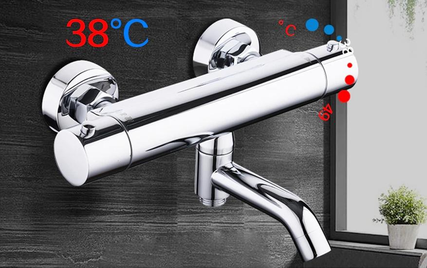 Еще один полезный девайс для повышения комфорта — термостатический смеситель, он обеспечивает на выходе поток воды строго заданной температуры. На смесителе есть два барашка, одним можно установить температуру от 20°С до 48°С, а вторым просто регулировать силу потока воды. Причем, температура воды будет постоянно идти та, которую Вы установили, независимо от перепадов давления в трубах и того, насколько сегодня решили подогреть воду комунальщики. Конечно, если горячей воды нет, то он ее не подогреет т.к. нем нет никаких нагревательных элементов или подключения к электросети, но теперь не нужно беспокоиться, каждый раз, о предварительном подстраивании приятной температуры, при приеме душа и о том, что кто-то может включить в это время холодную или горячую воду на кухне :)
