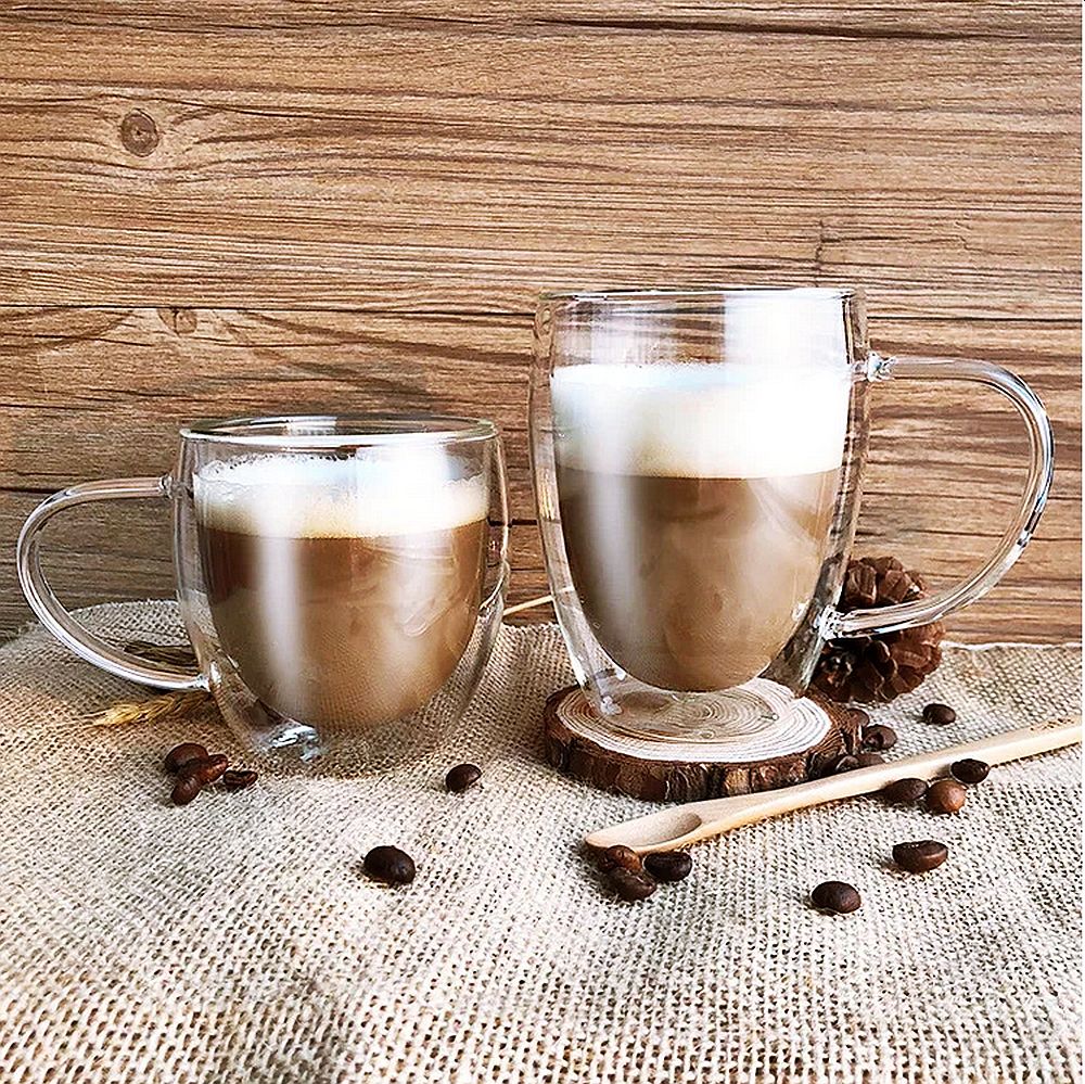 Популярный вариант кружки классической формы для кофе или чая. Секрет кружки заключается в двойных стенках сосуда, которые обеспечивают более длительное время сохранения тепла налитых в него напитков. Кружка полностью прозрачная, смотрится с одной стороны просто, а с другой вполне стильно. На странице товара разные варианты объема: 250, 350 или 450мл.