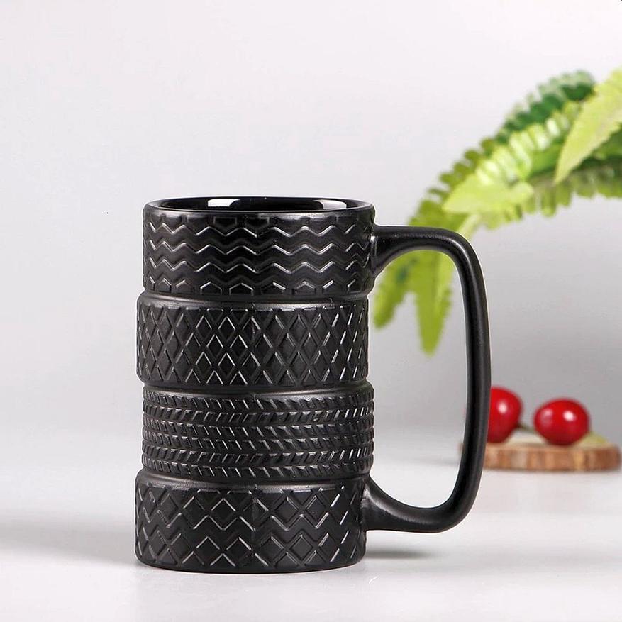 Необычный и весьма креативный вариант исполнения кружки в виде четырех автомобильных шин, установленных друг на друга. Будет отличным подарком автомобилисту или специалисту шиномонтажа :) Кружка изготовлена из керамики, внешняя часть матовая, внутренняя глянцевая. Объем 400 мл.