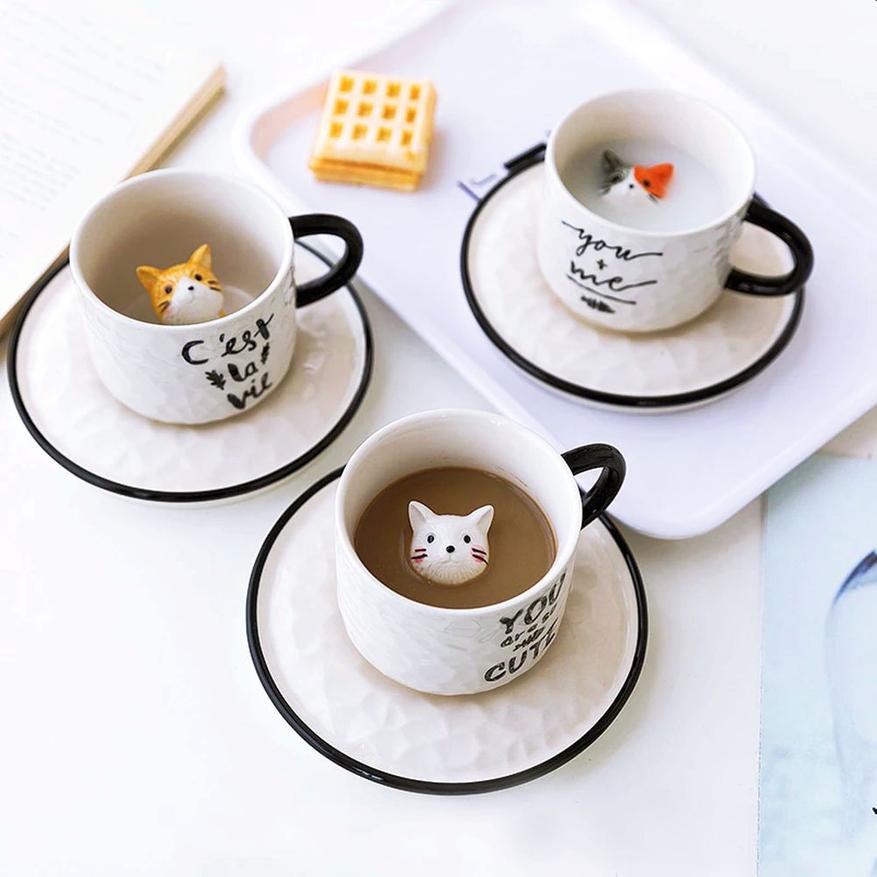 Кружки для любителей котиков, милота которых попросту зашкаливает. На дне каждого экземпляра находится котик, который «выныривает» по мере опустошения кружки. Всего четыре варианта на выбор. Фигурки раскрашены в разные цвета. На боковой стороне кружек жизнеутверждающие надписи. Объем: 220мл.