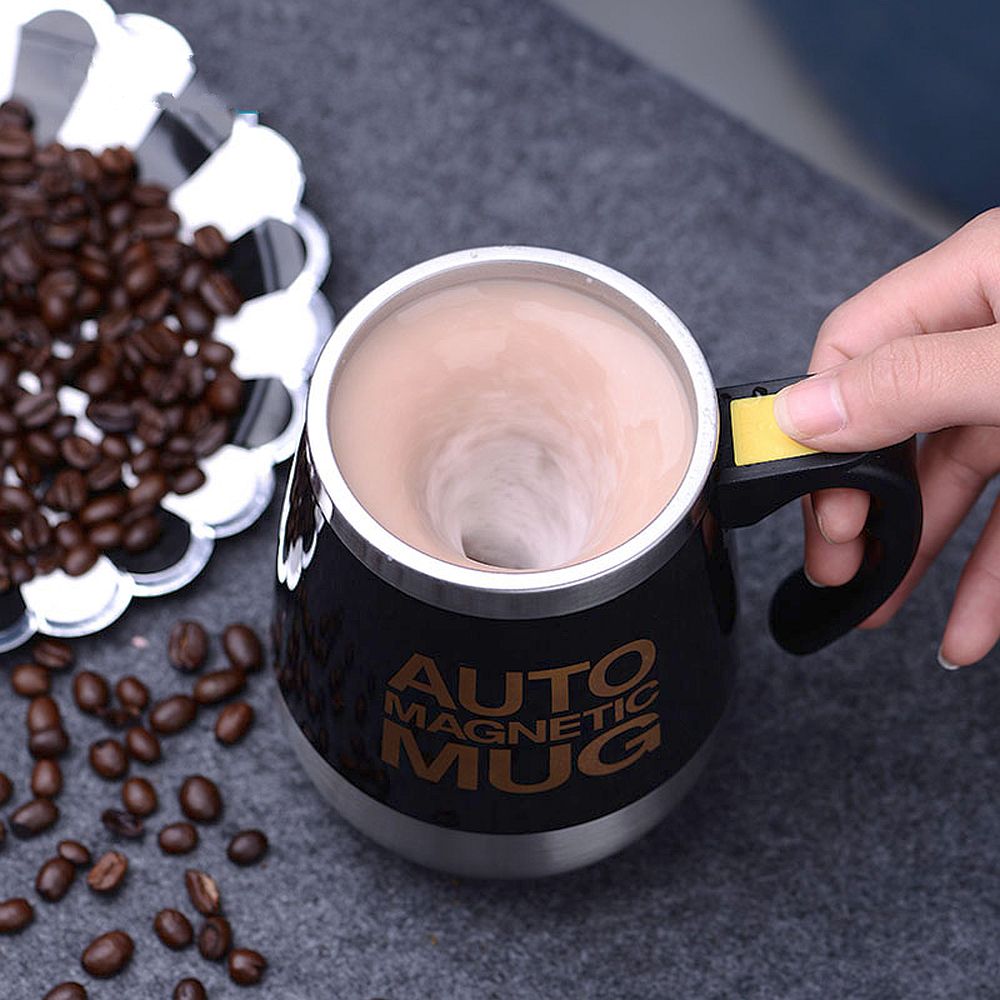Крутая кружка, которая может самостоятельно смешивать напитки, например, чай и молоко или размешивать сахар. Механизм встроенный в основание кружки, обеспечивает быстрое вращение магнитной капсулы на ее дне, что вызывает образование водоворота напитка. Два варианта исполнения — на батарейках или на перезаряжаемом аккумуляторе. Кружка изготовлена из нержавеющей стали, сверху пластиковая крышка. Объем 250мл.
