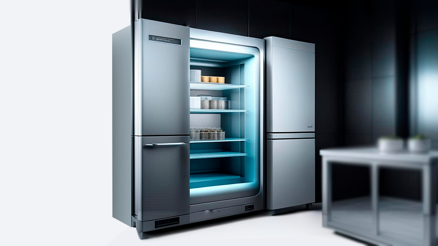 Инверторный двигатель обеспечивает низкое энергопотребление, минимизацию уровня шума и продлевает срок службы холодильника.