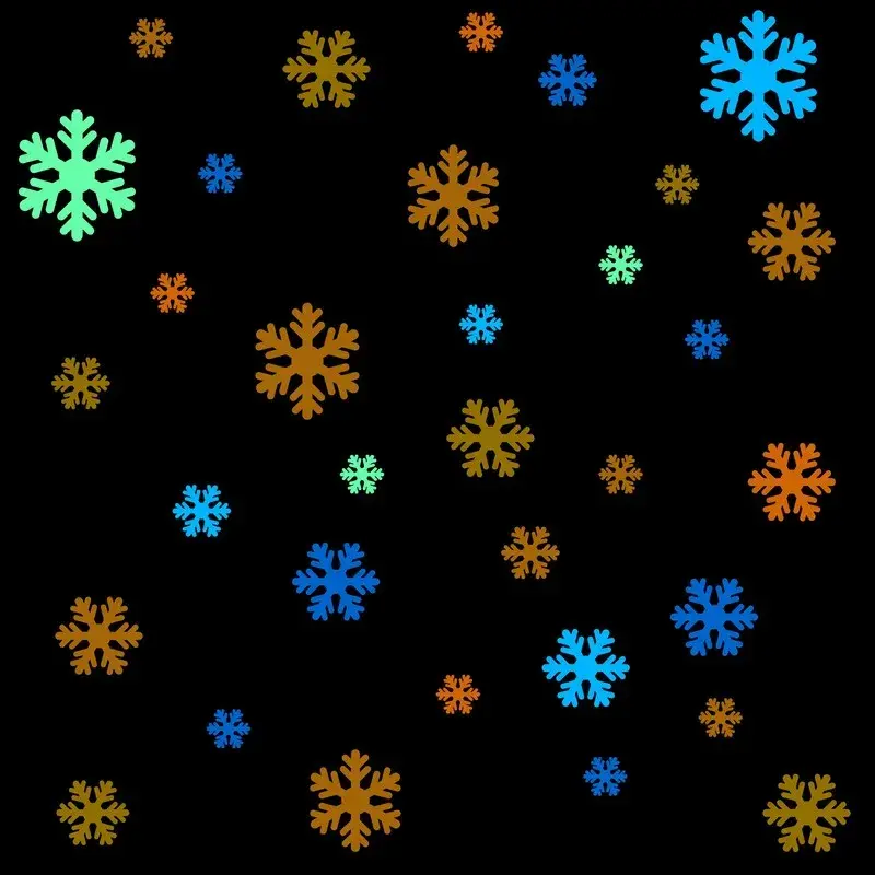 Приобрести можно как комплект наклеек из снежинок от 4 до 16 штук. Также можно выбрать цвет их подсветки в темноте из синего, зелёного, оранжевого, жёлтого и голубого.