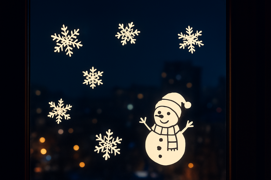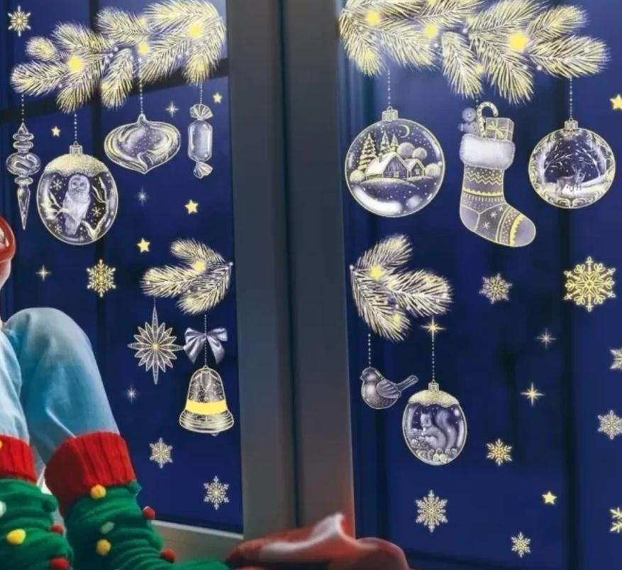 10 новогодних светящихся наклеек на окна