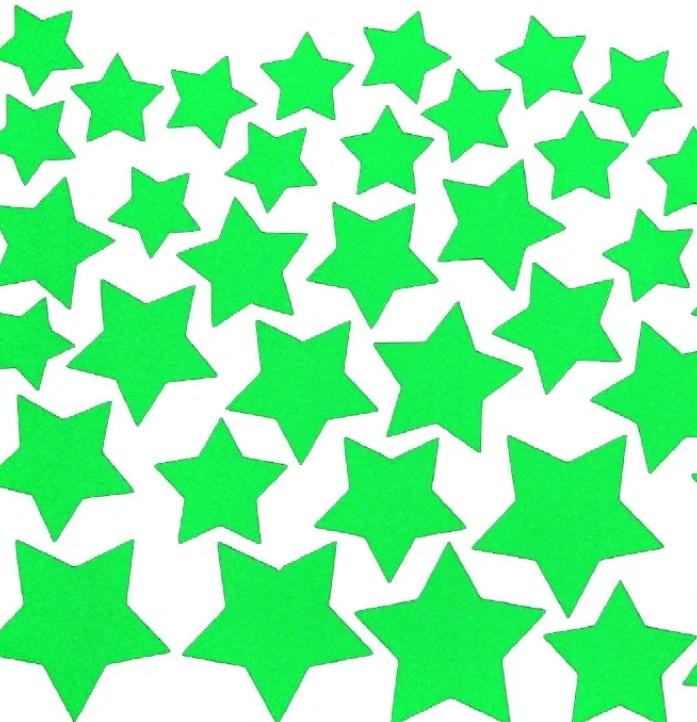 В комплекте идут звезды разных размеров: от 2,5 до 5 см. Маленьких звёзд ощутимо больше, чем больших.