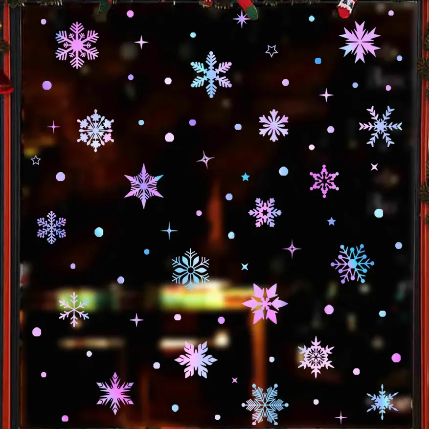 Имейте в виду, что наклейки меньше, чем кажутся на картинке. На одном листе 15x15 см может разом быть наклеено до 16 снежинок.