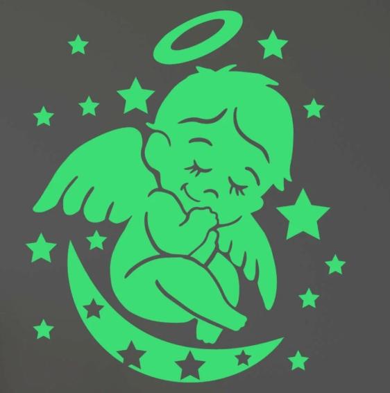 Эта наклейка больше будет к месту на Рождество, чем на Новый год, поскольку представляет собой ангела на луне.