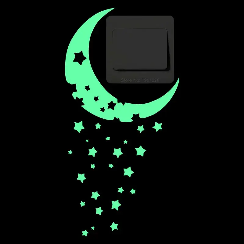 Сами наклейки практически белые, а в темноте, напитавшись солнечным светом или светом от лампы, начинают светиться зелёным цветом.